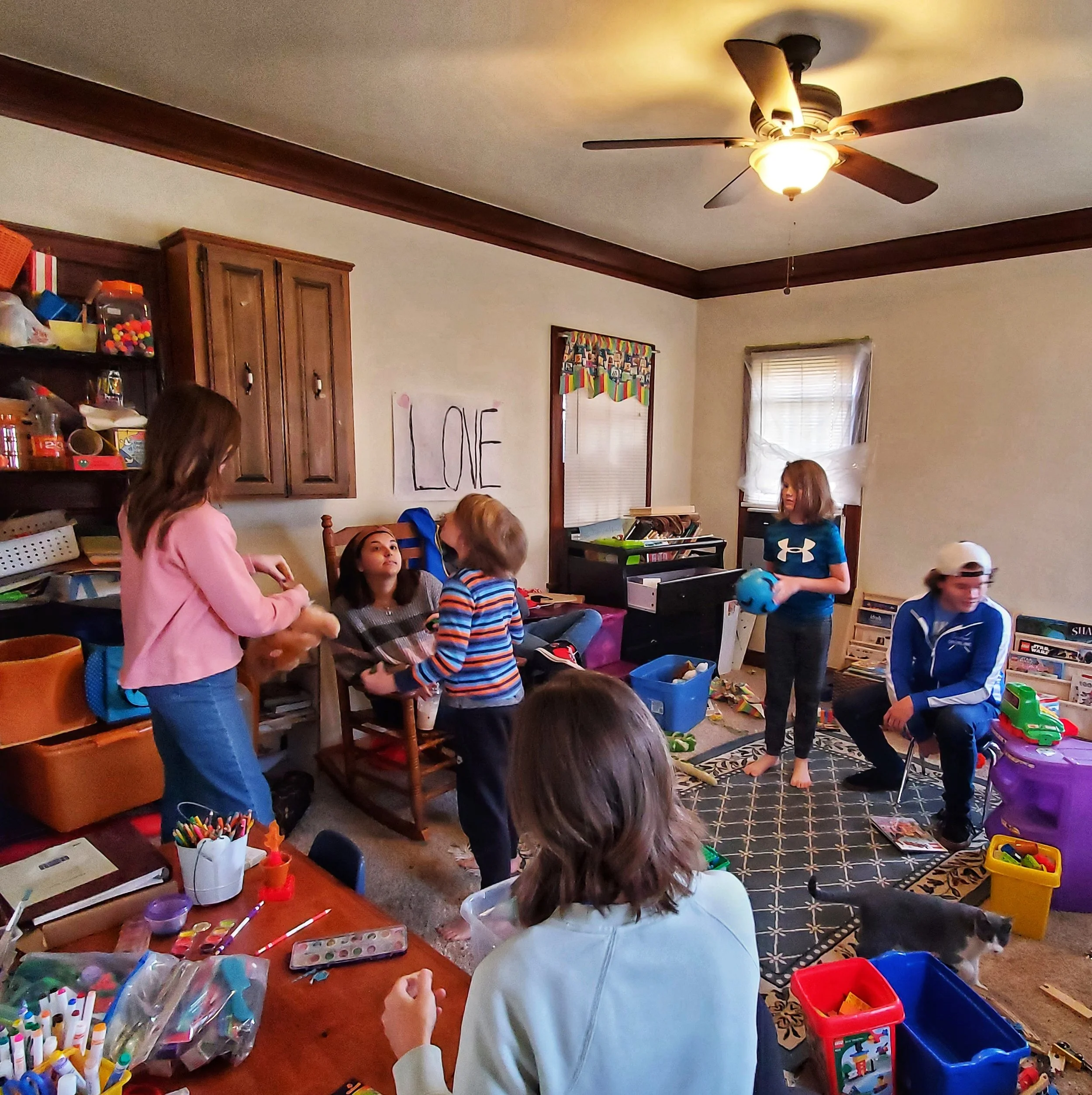 Following the songs and offering, the kids head out with one of our adults for their own activities, which may take place in the dining room or kids room of the church, out in our garden/patio area, or at a nearby park.