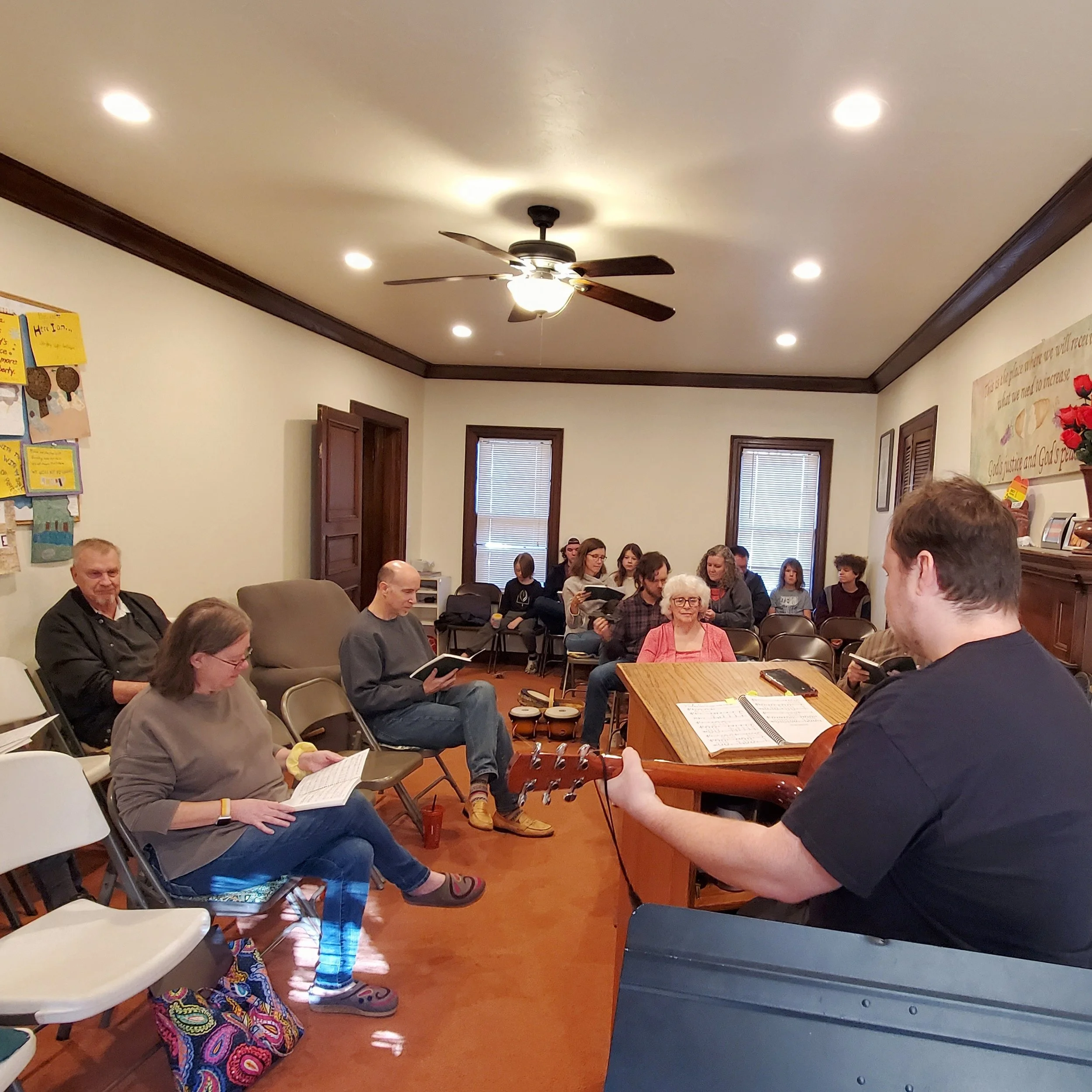 Service starts with one of our rotating worship facilitators leading us through a few songs from our hymnals, accompanied by guitar and ukulele.